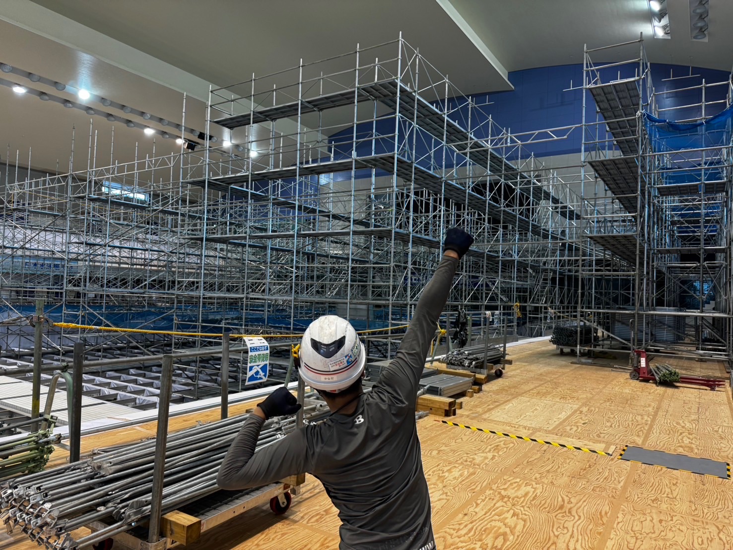 内部棚足場の施工途中です!なかなかボリュームあってやりがいの現場です!